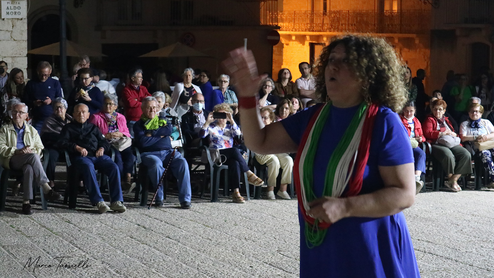Gli attori che stanno per andare in scena, dicono che il momento più intenso e più emozionante è l'attimo prima che si apra il sipario.... Proprio come l'emozione che sto provando in questo momento e che voglio condividere con voi... davvero grazie a tutti di essere qui! Un’emozione che si rispecchia nei tre colori che portiamo sul petto, il rosso della passione, il verde della speranza e il bianco della fiducia, di ciò che ancora di bello e di buono potrà accadere. Abbiamo voluto che la nostra festa si svolgesse in piazza, quella che i greci chiamavano agorà, un luogo quasi sacro che rappresentava la polis, la città e dove si svolgeva la vita politica sociale e religiosa di tutta la comunità e siamo qui, davanti al nostro bel palazzo municipale, perché desideriamo che questa non sia una festa solo nostra, ma di tutta Cassano. Organizzare questa festa in piazza è stata una dura corsa ad ostacoli e ci sono stati momenti di vero sconforto. Ma noi che abbiamo imparato ad essere resilienti e positivi, non ci siamo arresi anche perché non ci siamo sentiti soli, abbiamo ricevuto ascolto e sostegno da tanti sponsor e dall’Amm.ne Comunale, per cui è doveroso ringraziare la dottoressa Di Medio, la sua Giunta, in particolare l'ex assessore Caprio, il dottor Ivano Biancardi e il comandante dei VVUU Nicola Dentamaro. Anche la nuova amministrazione ci è venuta subito in soccorso per risolvere alcuni seri problemi e quindi GRAZIE! Stasera le protagoniste, più che le parole, sono le emozioni, la musica, la danza le immagini… Abbiamo scelto vari modi e diversi linguaggi per raccontarvi la nostra storia, per dirvi chi siamo noi.E poiché, come per magia, con il passar degli anni, l'UTE non invecchia, anzi ringiovanisce, abbiamo voluto parlarvi di noi in un modo davvero nuovo, moderno, con la proiezione di un VIDEO MAPPING, uno spettacolo inedito che offriamo grazie al generoso contributo della BANCA DI CREDITO COOPERATIVO DI CASSANO MURGE E TOLVE, nostro principale e generoso sponsor.